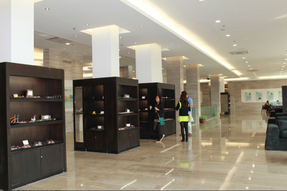 中心不仅具有各种世界领先的设备、国际标准层流超洁净手术室,而且装修豪华气派俨然五星级酒店,瀑布和水景、吧台、患者储物柜、糖果、舒适的沙发、音乐、电视、儿童乐园、五星级豪华厕所里各种细节、上网区等一应俱全,体现了对患者无微不至的关怀。