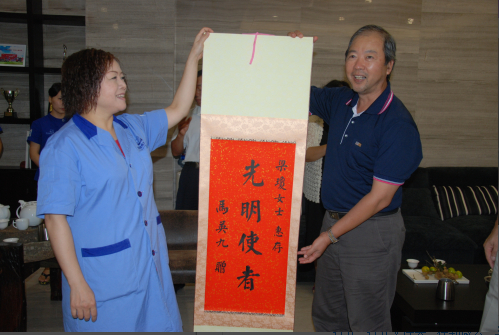 马英九先生为海南眼视光学中心首席视光专家梁琼题字“光明使者”